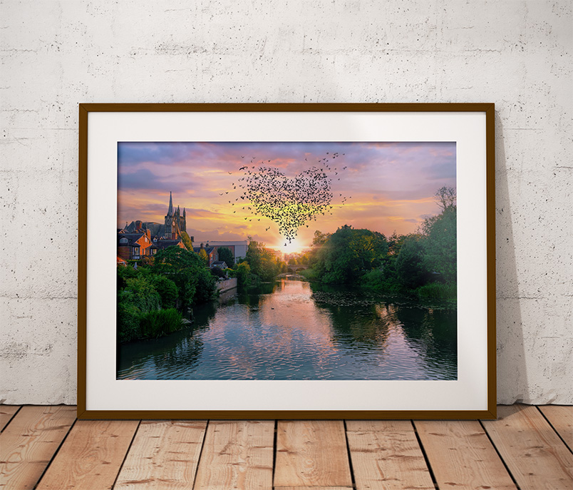 All A4 orders come with a glass fronted A3 frame, in either black or white. The print is also mounted and can be signed if requested.